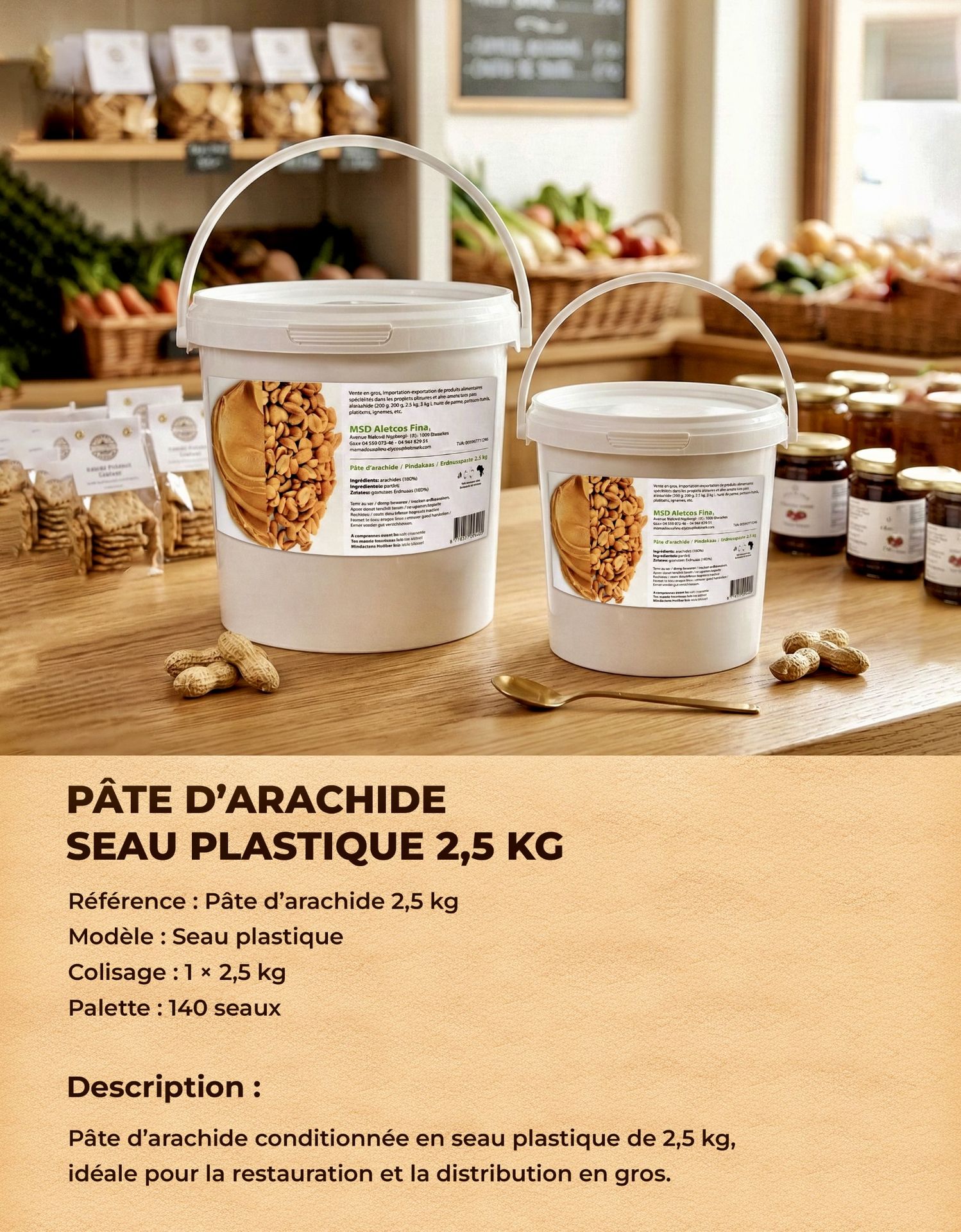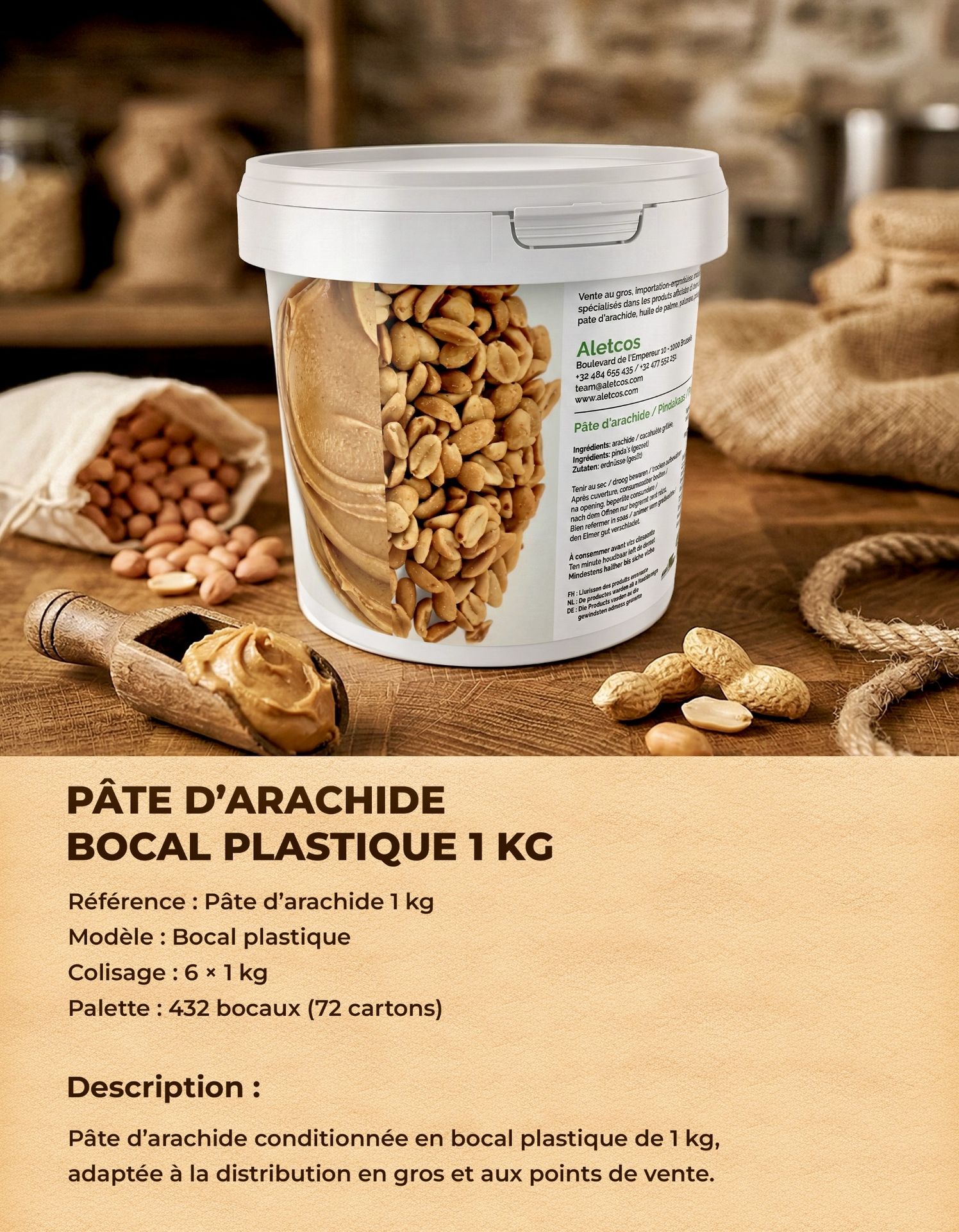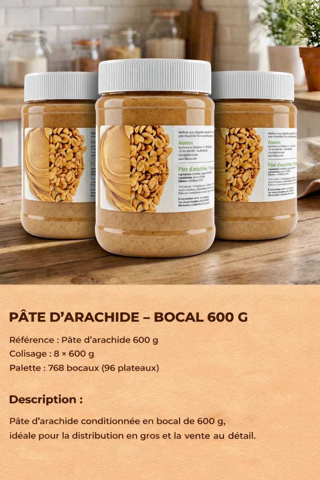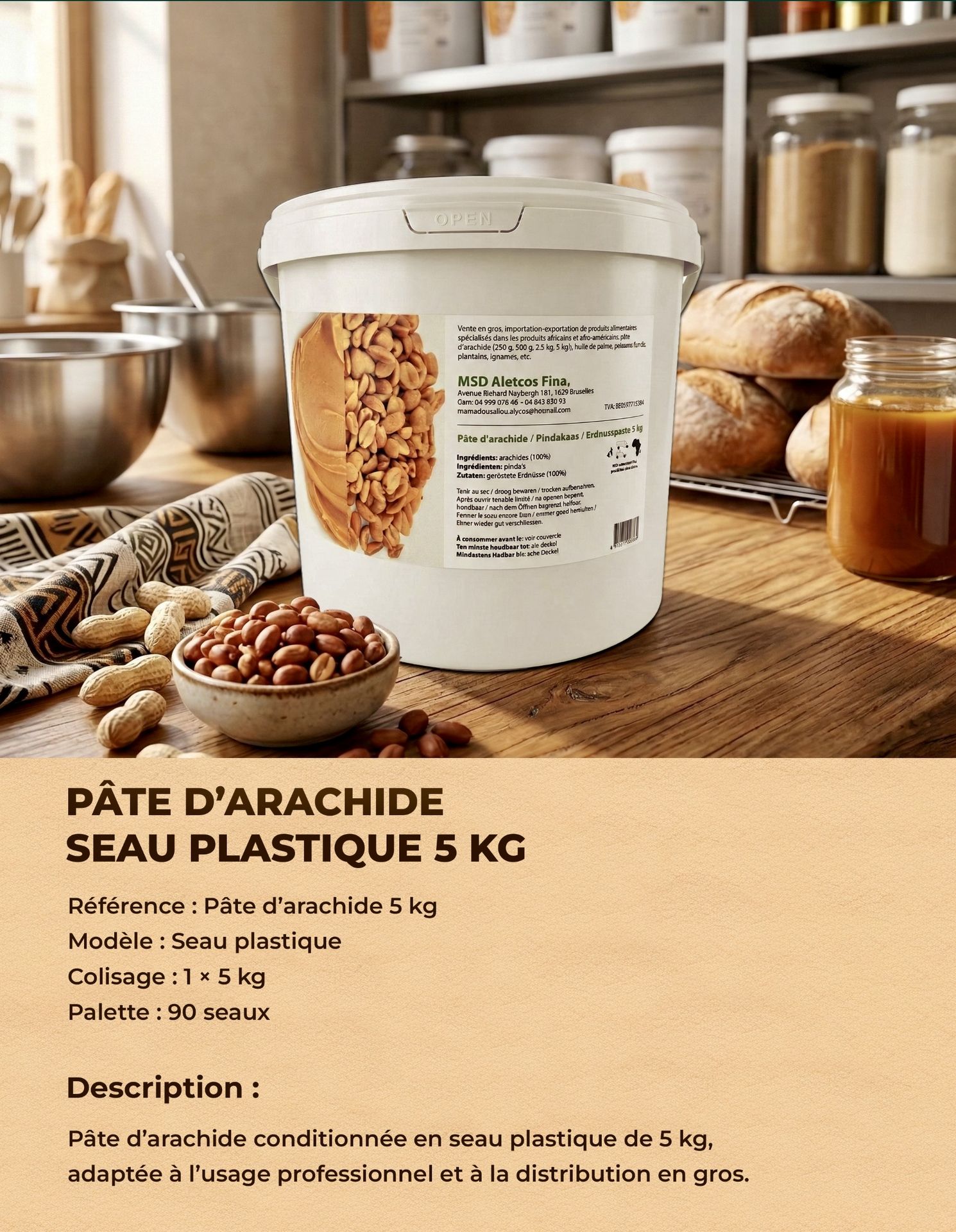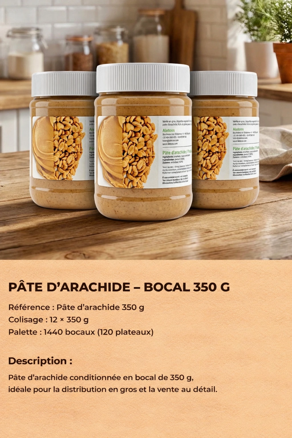 Nous offrons une large gamme de pâte d'arachide, disponible en différentes tailles: 350g, 600g, 1kg, 2,5kg et 5kg, répondant ainsi aux besoins variés de notre clientèle, qu'il sagisse de particuliers ou de professionnels.
